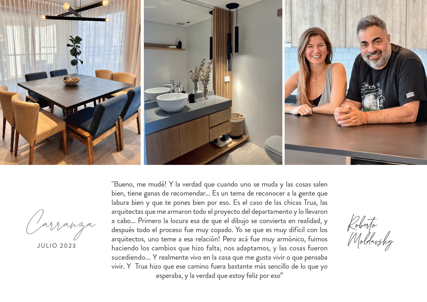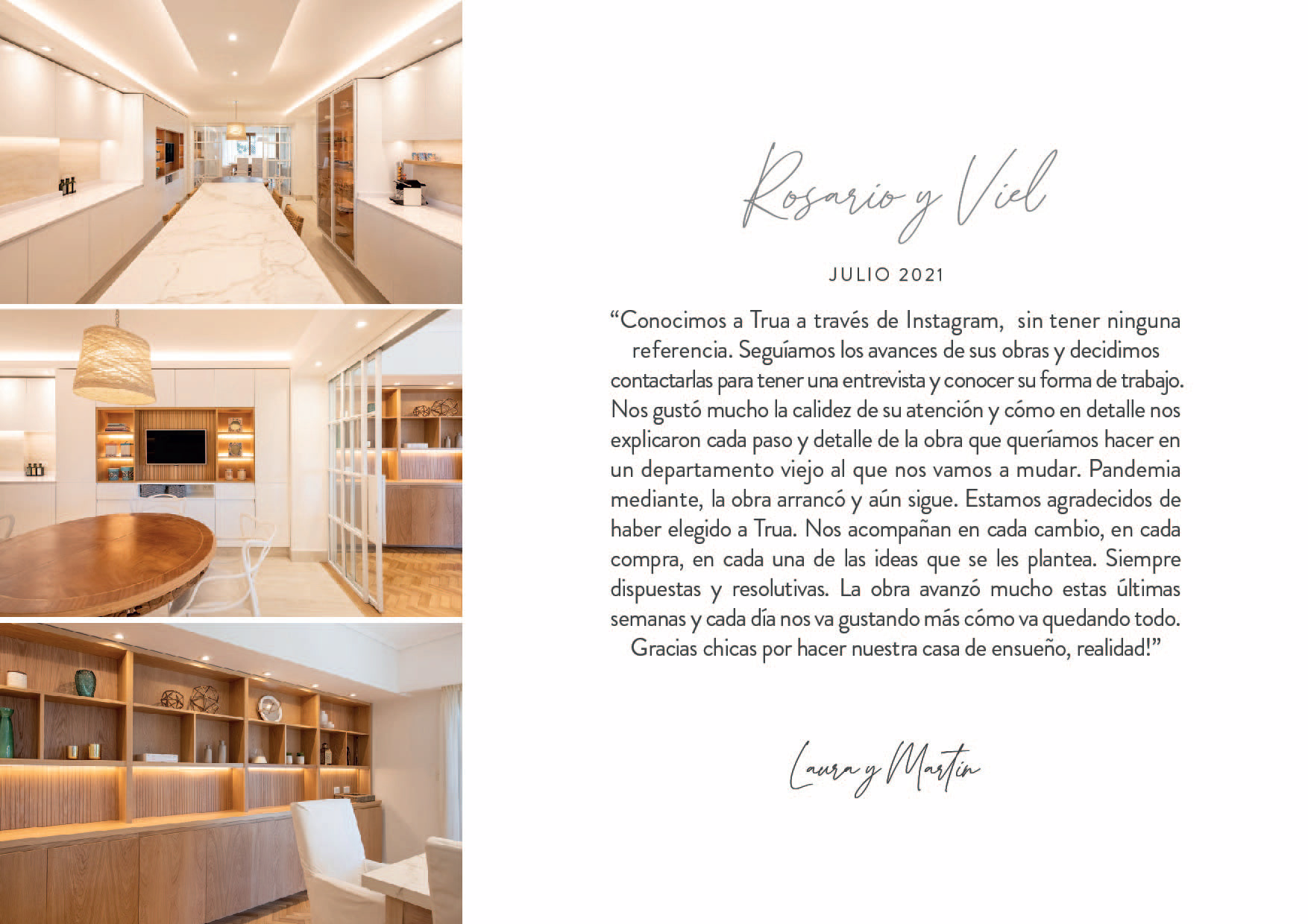 OBRA MERCEDES - OCTUBRE 2024 "Trabajar con Trua fue un placer. Cumplieron con los tiempos acordados (algo poco habitual en este tipo de proyectos), escucharon cada una de nuestras necesidades y diseñaron en base a eso. Siempre estuvieron atentas ante cualquier eventualidad, incluso después de la entrega. Súper recomendables." Jordan